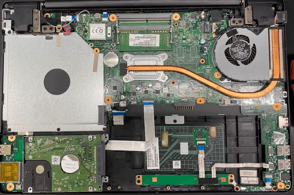※下画像 ノートパソコンの内部。